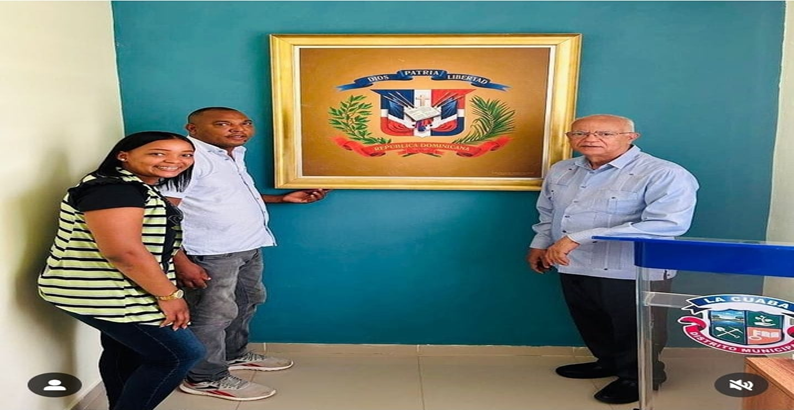 En este día recibimos de parte del Sr. Miguel Estrella la donación de un retrato del Escudo Nacional Dominicano, lo que cual estará presente en las instalaciones de Nuestra Junta Municipal la Cuaba. Y agradecemos tan apreciado obsequio.