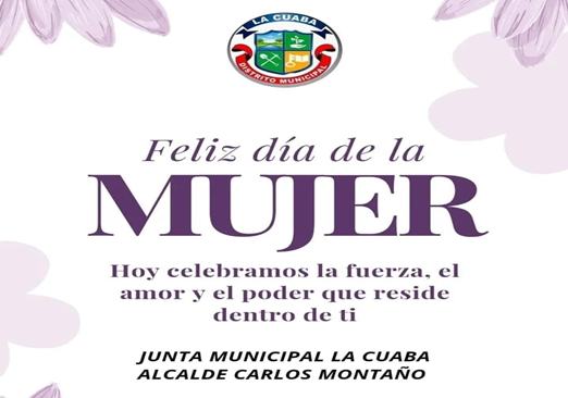 Hoy en el Dia Internacional de la Mujer, la Junta Municipal la Cuaba y su alcalde Carlos Montaño. queremos tomar un momento para rendir homenaje a todas las mujeres que con su valentía, fuerza y determinación han dejado una huella imborrable en la historia, y en el mundo en que compartimos. Este día no solo es una celebración de los logros alcanzado, si no también un recordatorio de la lucha constante por igualdad, la justicia y el respecto que cada mujer merece.